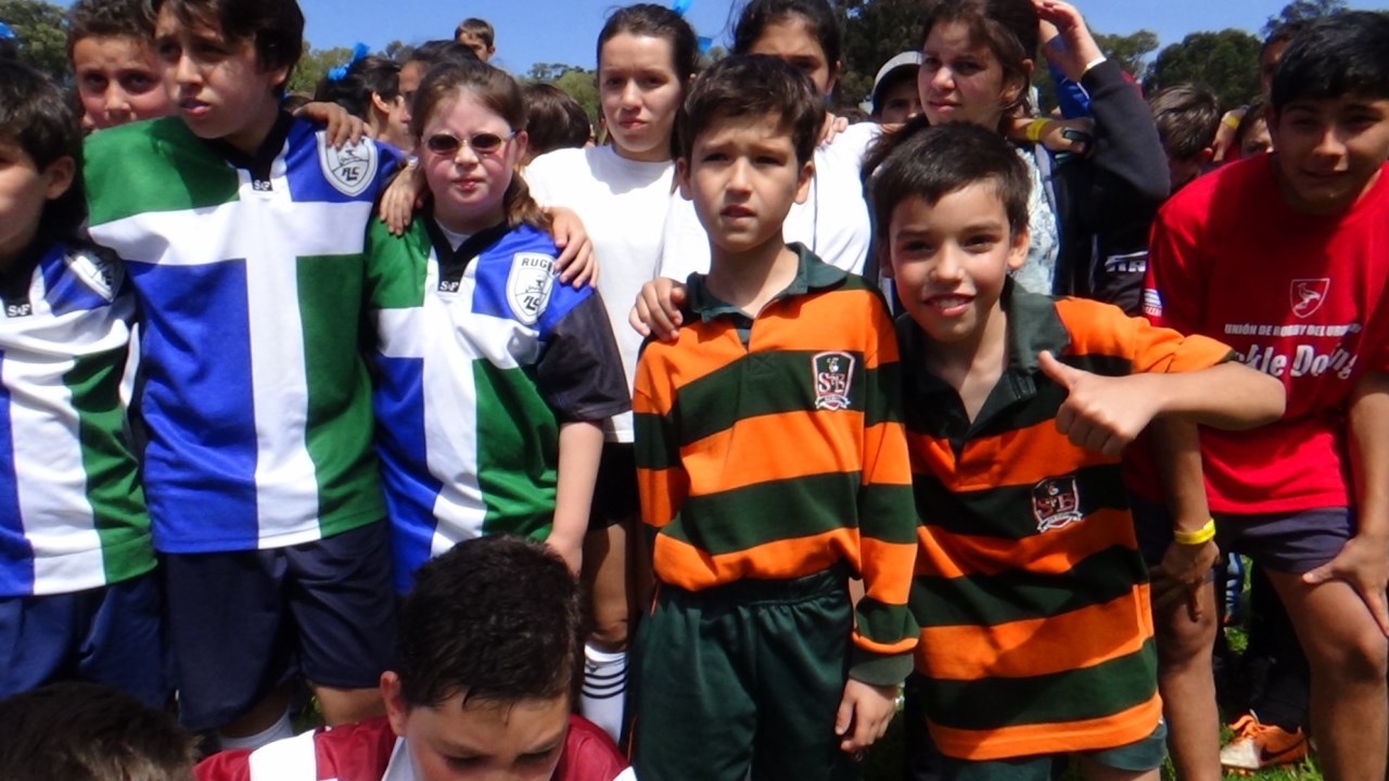 In this event, carried out together with Scholas Ocurrentes and the Uruguayan Rugby Union, young people from educational and sport institutions from all religions and those present in the stadium built this scrum, with the peculiarity that it was formed by a single group pushing towards one side and with the same objective: peace.