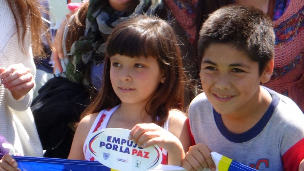 At the end of the event, each participant was handed a sticker with the shape of a rugby ball that quoted “I push for Peace”, to continue training the value of peace in their own lives, plus a ribbon reading “I pushed for Peace”.